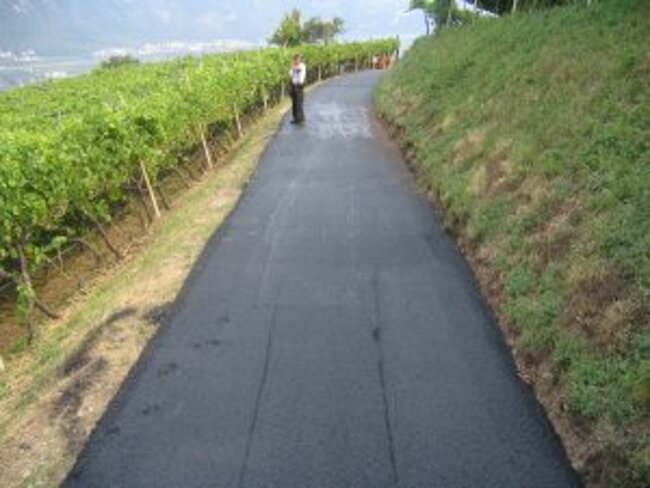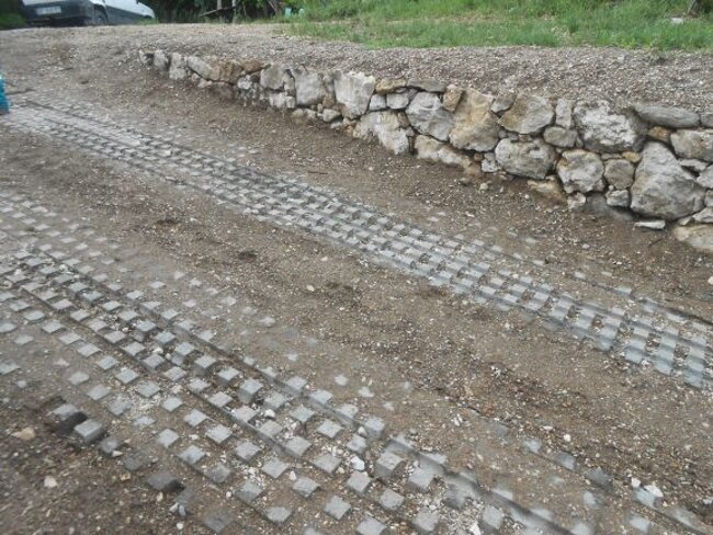 Asfaltieren und Betonieren von Feldwegen, Verlegung von Rasengittersteinen