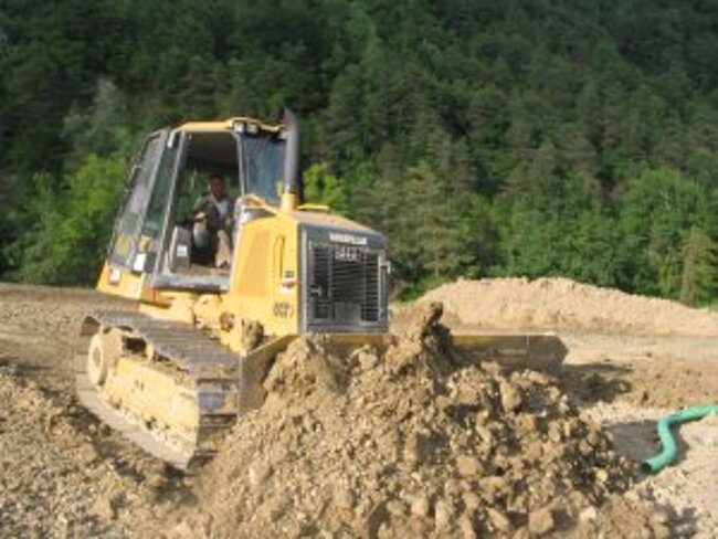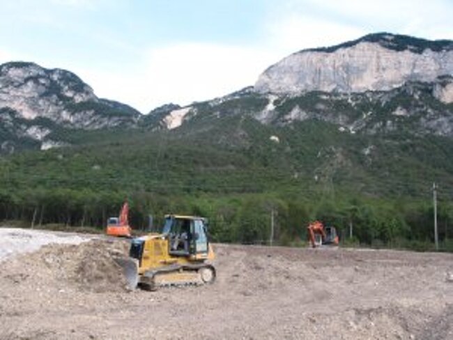 Überschöpfen und Planieren des Geländes, Anker und Säulen setzen, Errichten von Wendeplatten und Terrassierung;