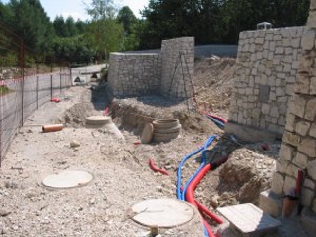 Errichten von Infrastrukturen, Verlegung und Einbau von Leitungen, Quellfassungen,